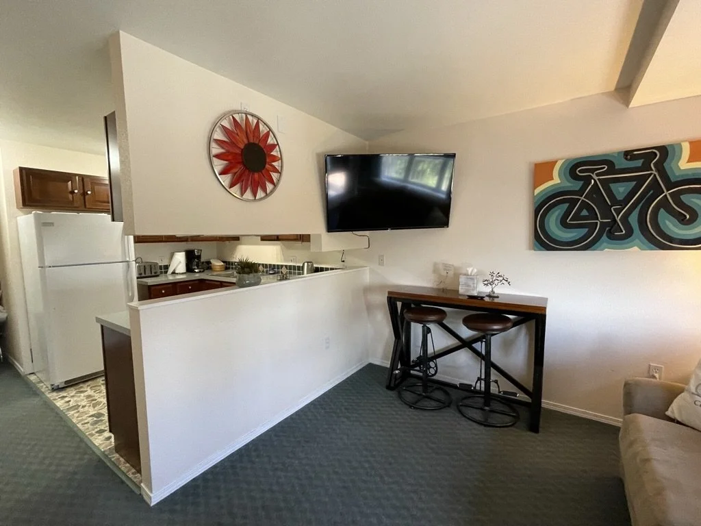 Enjoy the quirky bike-themed decor, and direct access to the patio from the suite’s living room. Included is free wifi, a Roku television, hair dryer, locally roasted coffee, and complimentary local bath products.